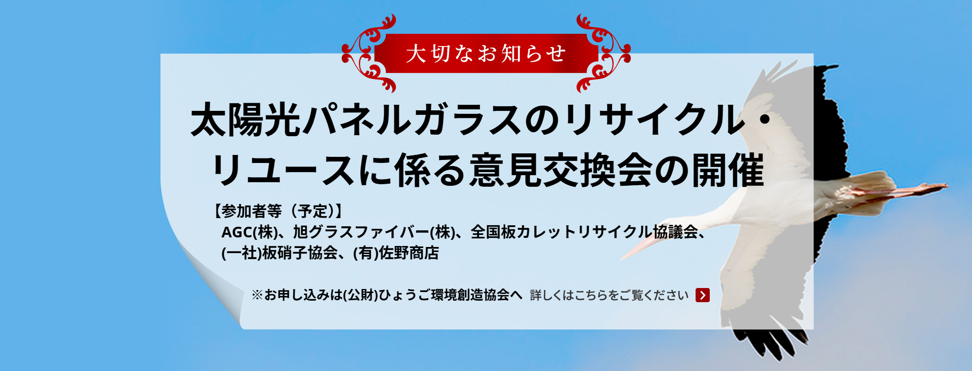 2025.12.22 (公財)ひょうご環境創造協会から太陽光パネルガラスのリサイクル・リユースに係る意見交換会開催の周知協力依頼がありました。