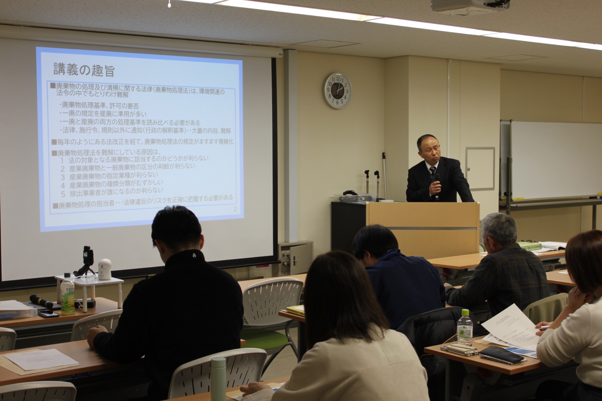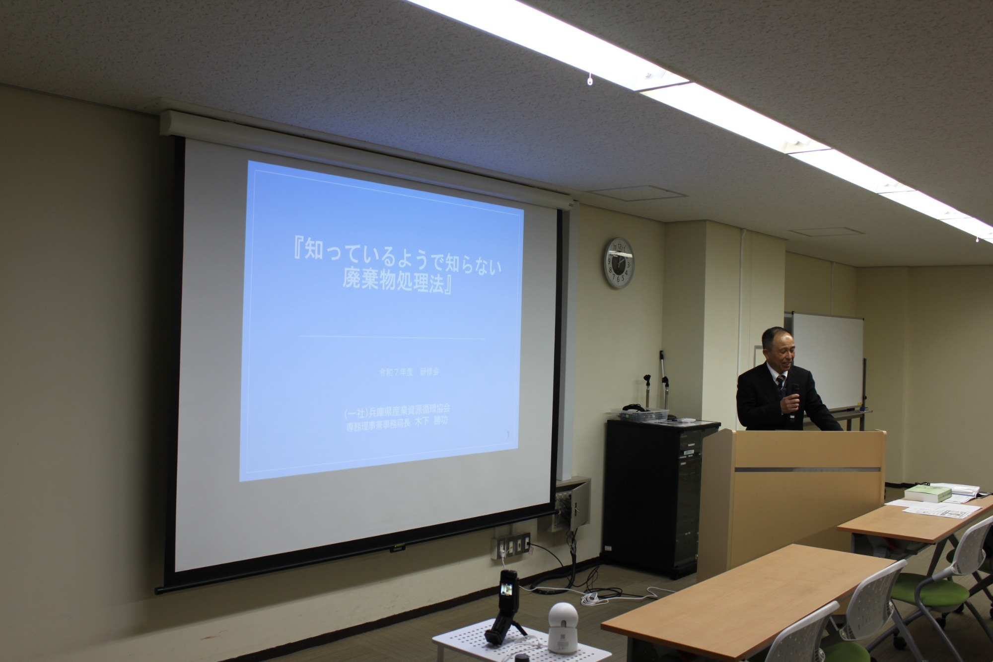 演題は『知っているようで知らない廃棄物処理法』で、昨年度同様に協会専務理事の木下勝功が講師を務めました。